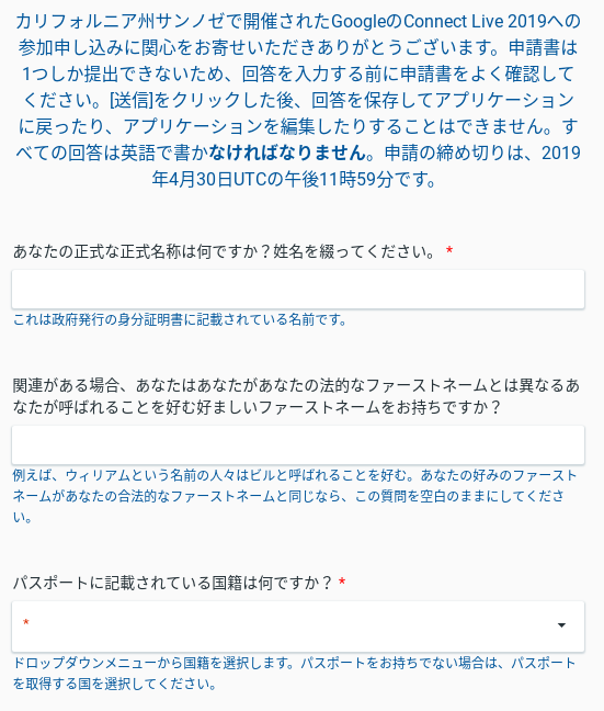 そして更に、申し込みフォームに英語で様々な回答が必要とのこと。